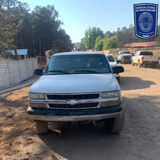 • Vehículo tipo pick up marca Chevrolet, línea Silverado, modelo 2001, color Blanco, el cual contaba con reporte de robo en la ciudad de Chihuahua.